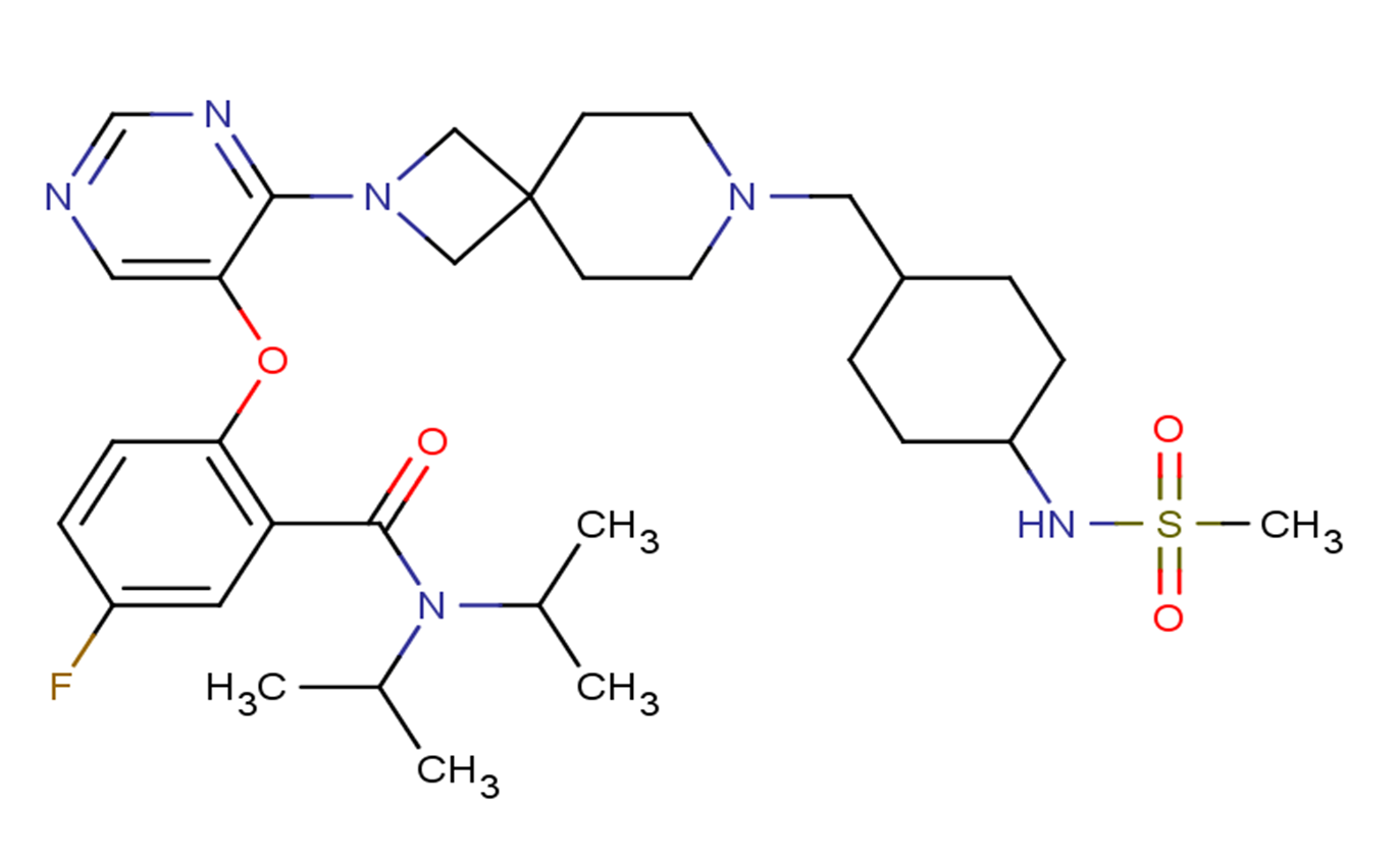SMILESCC(C)N(C(C)C)C(=O)C1=C(C=CC(=C1)F)OC2=CN=CN=C2N3CC4(C3)CCN(CC4)CC5CCC(CC5)NS(=O)(=O)C
