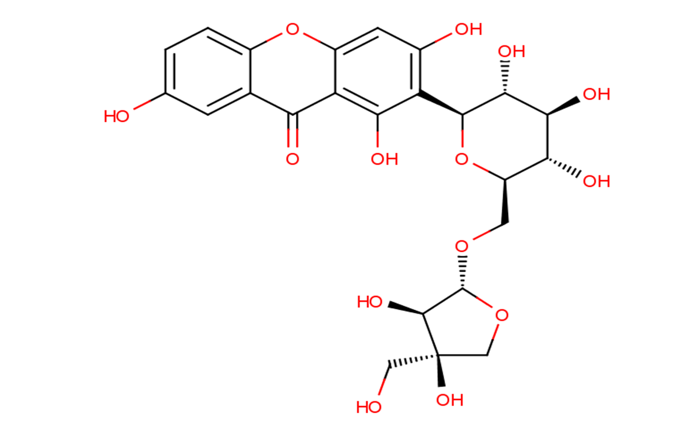 SMILESOC1=C(C(C2=C3)=O)C(OC2=CC=C3O)=CC(O)=C1[C@@H]([C@@H]([C@H]4O)O)O[C@@H]([C@H]4O)CO[C@H](OC[C@@](O)5CO)[C@@H]5O