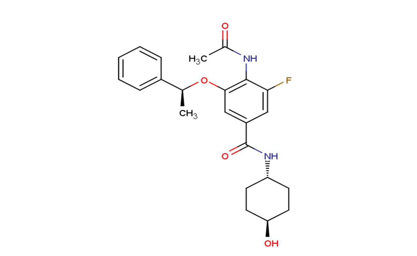 SMILESO=C(N[C@@H]1CC[C@@H](O)CC1)C2=CC(O[C@H](C3=CC=CC=C3)C)=C(NC(C)=O)C(F)=C2