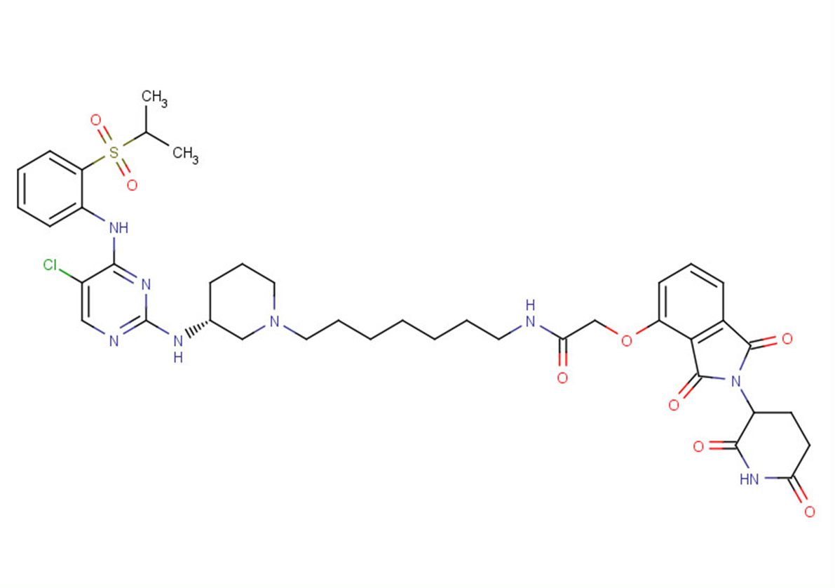 SMILESO=C(NCCCCCCCN1C[C@H](NC2=NC=C(Cl)C(NC3=CC=CC=C3S(=O)(C(C)C)=O)=N2)CCC1)COC4=CC=CC(C(N5C(CC6)C(NC6=O)=O)=O)=C4C5=O