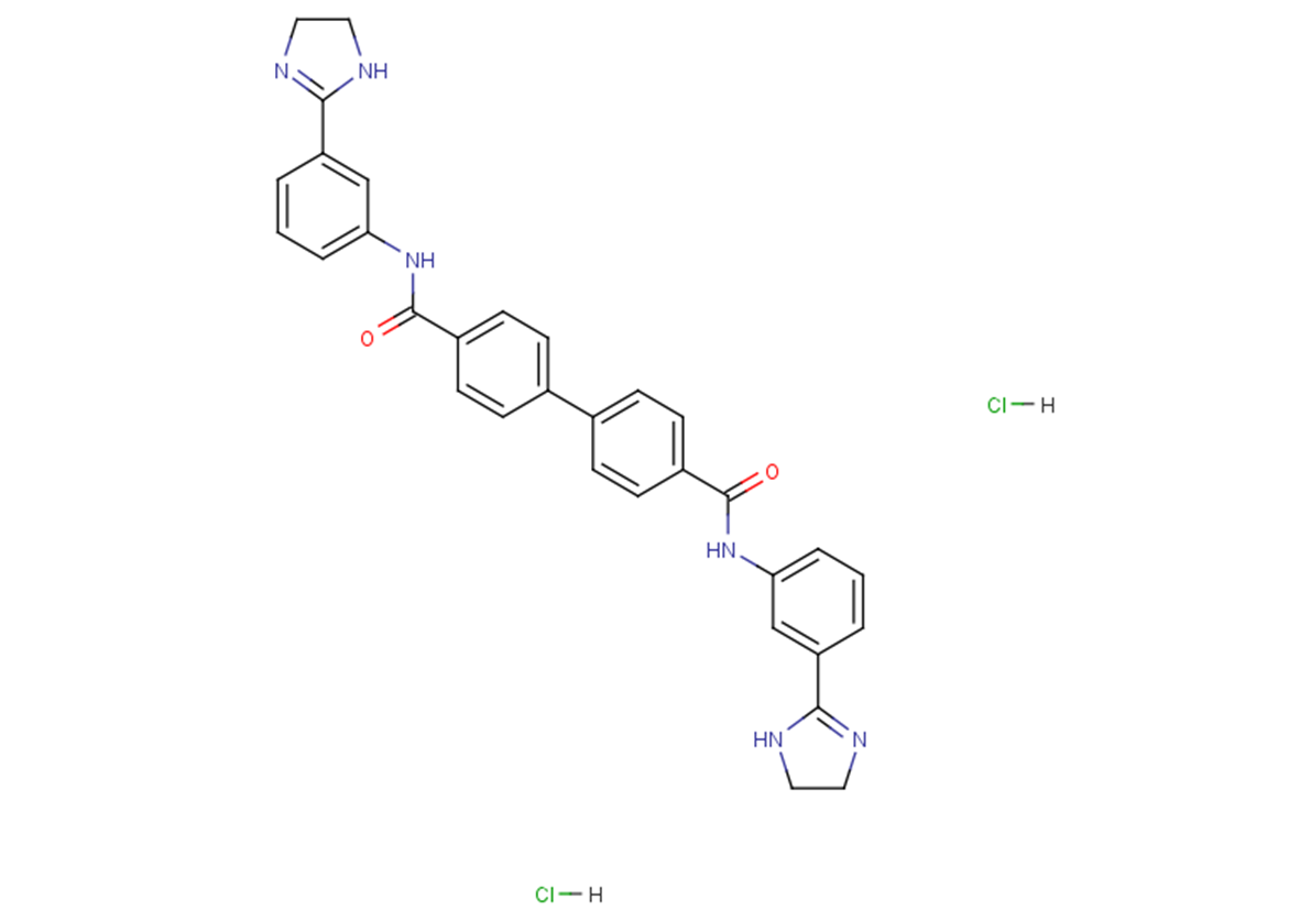 SMILESO=C(C1=CC=C(C2=CC=C(C(NC3=CC=CC(C4=NCCN4)=C3)=O)C=C2)C=C1)NC5=CC=CC(C6=NCCN6)=C5.[H]Cl.[H]Cl