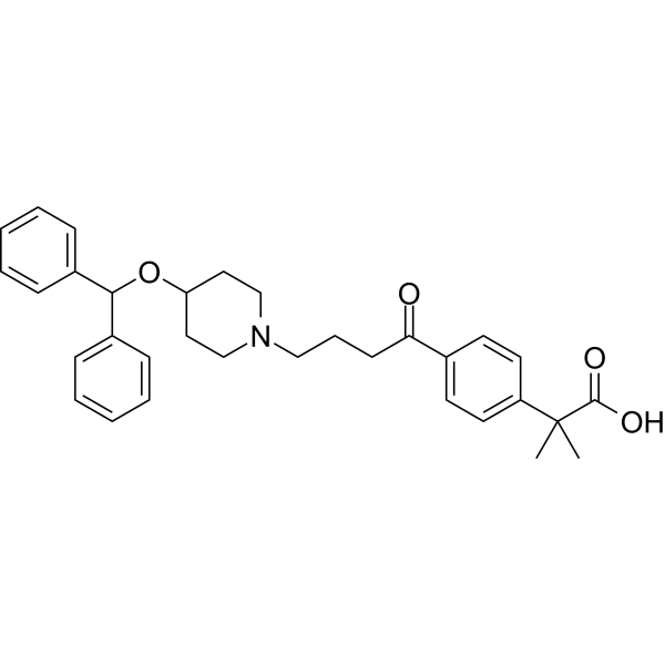 SMILESCC(C)(C(O)=O)c1ccc(cc1)C(=O)CCCN1CCC(CC1)OC(c1ccccc1)c1ccccc1
