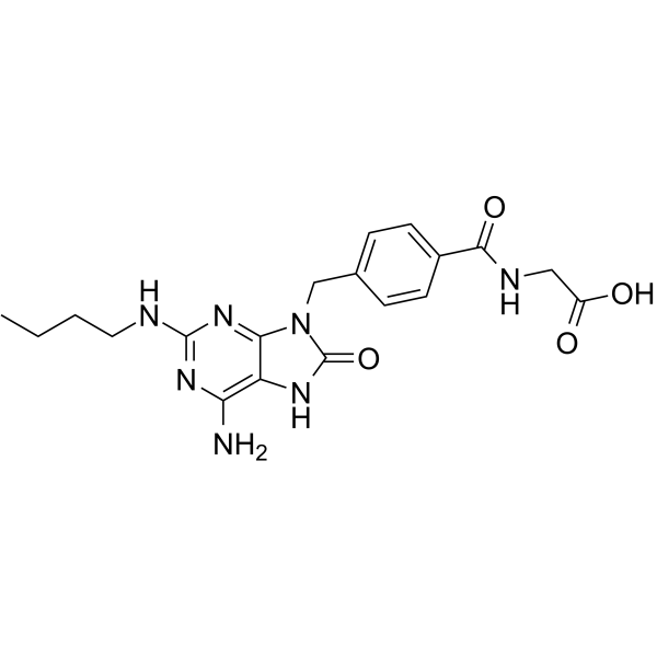 SMILESCCCCNc1nc(N)c2[nH]c(=O)n(Cc3ccc(cc3)C(=O)NCC(O)=O)c2n1