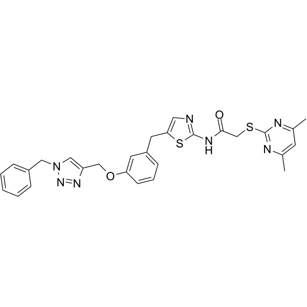 SMILESCc1cc(C)nc(SCC(=O)Nc2ncc(Cc3cccc(OCc4cn(Cc5ccccc5)nn4)c3)s2)n1