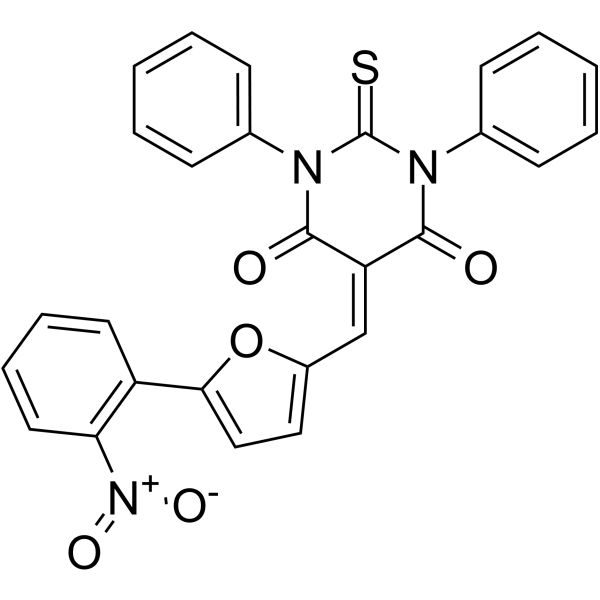 SMILES[O-][N+](c(cccc1)c1-c1ccc(C=C(C(N(c2ccccc2)C(N2c3ccccc3)=S)=O)C2=O)o1)=O