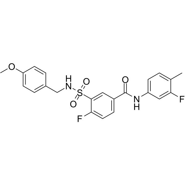 SMILESCOc1ccc(CNS(=O)(=O)c2cc(ccc2F)C(=O)Nc2ccc(C)c(F)c2)cc1
