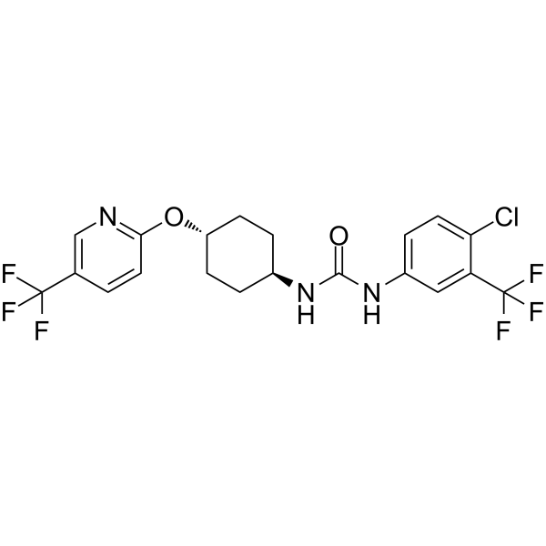 SMILESFC(F)(F)c1ccc(O[C@H]2CC[C@@H](CC2)NC(=O)Nc2ccc(Cl)c(c2)C(F)(F)F)nc1