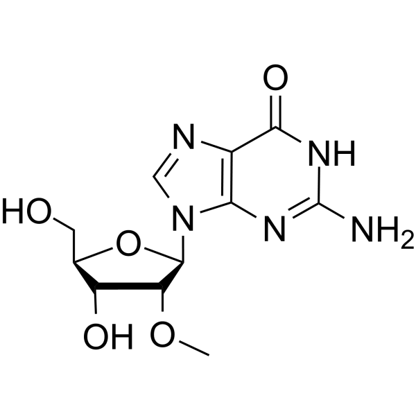2'-OMe-鸟苷是由 tRNA 鸟苷-2'-o-甲基转移酶作用产生的修饰核苷。 2'-OMe-鸟苷具有一定的促凋亡作用。