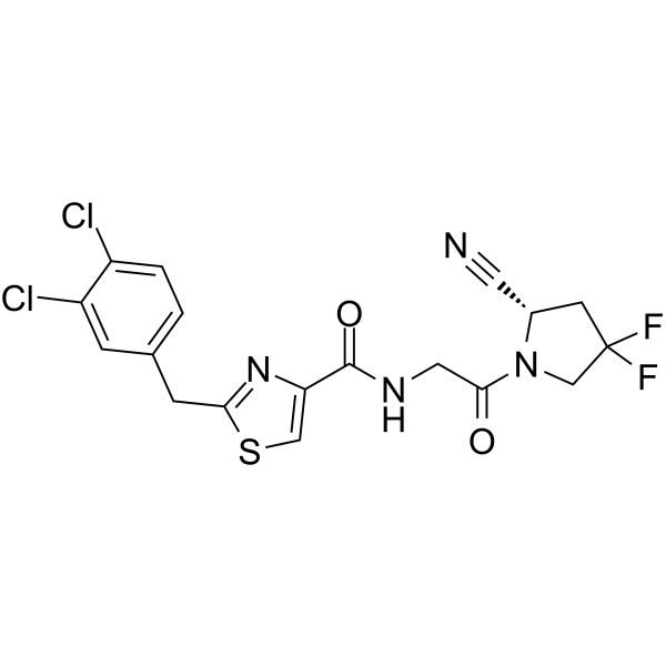 SMILESO=C(C1=CSC(CC2=CC=C(Cl)C(Cl)=C2)=N1)NCC(N3[C@@H](C#N)CC(F)(F)C3)=O