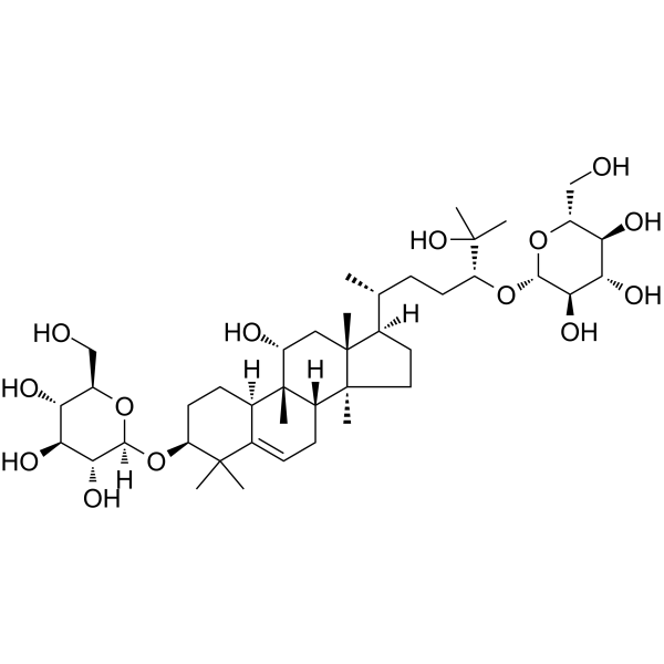 SMILES[H][C@@]12CC[C@H](O[C@@H]3O[C@H](CO)[C@@H](O)[C@H](O)[C@H]3O)C(C)(C)C1=CC[C@@]1([H])[C@]3(C)CC[C@H]([C@H](C)CC[C@@H](O[C@@H]4O[C@H](CO)[C@@H](O)[C@H](O)[C@H]4O)C(C)(C)O)[C@@]3(C)C[C@@H](O)[C@@]21C