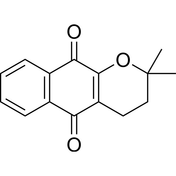 产品描述alpha-Lapachone has antineoplastic activity, it shows an approximately trypanocidal activity against Trypanosoma cruzi.(In Vitro):The photophysical and photochemical reactions of β-lapachone were studied using femtosecond transient absorption, nanosecond transient absorption, and nanosecond time-resolved resonance Raman spectroscopy techniques and density functional theory calculations. In acetonitrile, β-lapachone underwent an efficient intersystem crossing to form the triplet state of β-lapachone. However, in water-rich solutions, the singlet state of β-lapachone was predominantly quenched by the photoinduced protonation of the carbonyl group at the β position (O9). After protonation, a series of fast reaction steps occurred to eventually generate the triplet state α±-lapachone intermediate. This triplet state of α±-lapachone then underwent intersystem crossing to produce the ground singlet state of α±-lapachone as the final product. 1,2-Naphthoquinone is examined in acetonitrile and water solutions in order to elucidate the important roles that water and the pyran ring play during the photoconversion from β-lapachone to α±-lapachone. β-Lapachone can also be converted to α±-lapachone in the ground state when a strong acid is added to an aqueous solution.