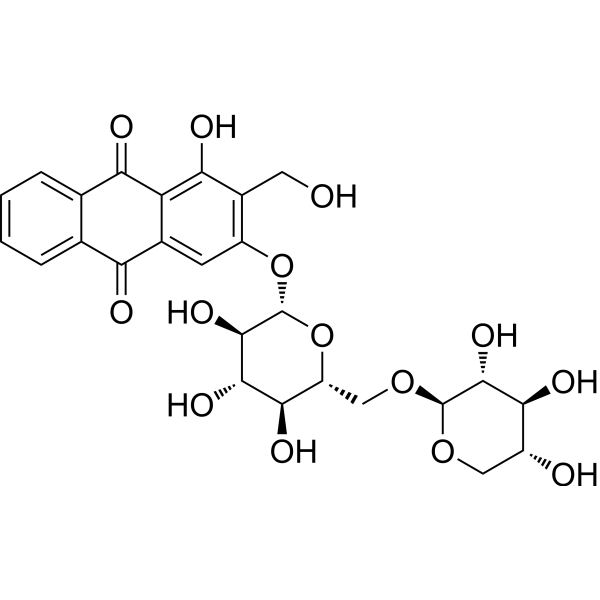 SMILESOCc1c(O)c2C(=O)c3ccccc3C(=O)c2cc1O[C@@H]1O[C@H](CO[C@@H]2OC[C@@H](O)[C@H](O)[C@H]2O)[C@@H](O)[C@H](O)[C@H]1O