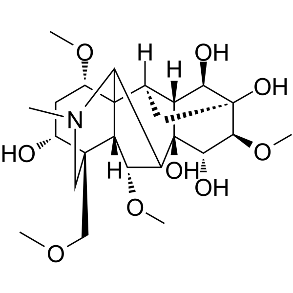 SMILESCOC[C@]12CN(C)[C@@H]3[C@@H]4[C@H](OC)[C@H]1[C@]3([C@@H]1C[C@@]3(O)[C@H](O)[C@@H]1[C@]4(O)[C@@H](O)[C@@H]3OC)[C@H](C[C@H]2O)OC