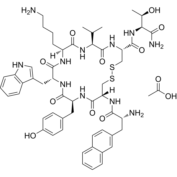 一种具有抗肿瘤活性的生长抑素类似物。Lanreotide acetate 可用于类癌综合症的研究。