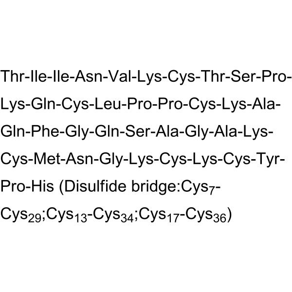 Potent KV1.3 channel blocker (IC50 = 36 pM). Displays no effect at calcium-activated channels. Reduces VEGF-induced transmembrane calcium influxes and nitric oxide production in human endothelial cells.