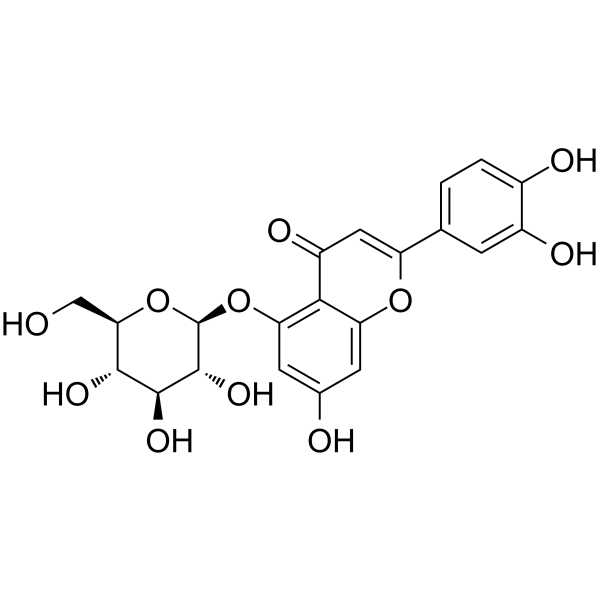 体外实验Luteolin 5-O-glucoside, at a non-toxic concentration, inhibits LPS-induced NO production and t-BHP-induced ROS generation in a dose-dependent manner in RAW 264.7 cells. Luteolin 5-O-glucoside also suppresses the expression of iNOS and COX-2 in LPS-stimulated macrophages.