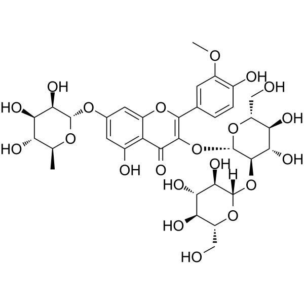 Isorhamnetin 3-sophoroside-7-rhamnoside is a natural flavonol glycoside. Isorhamnetin 3-sophoroside-7-rhamnoside inhibited the growth of harmful microalgae.