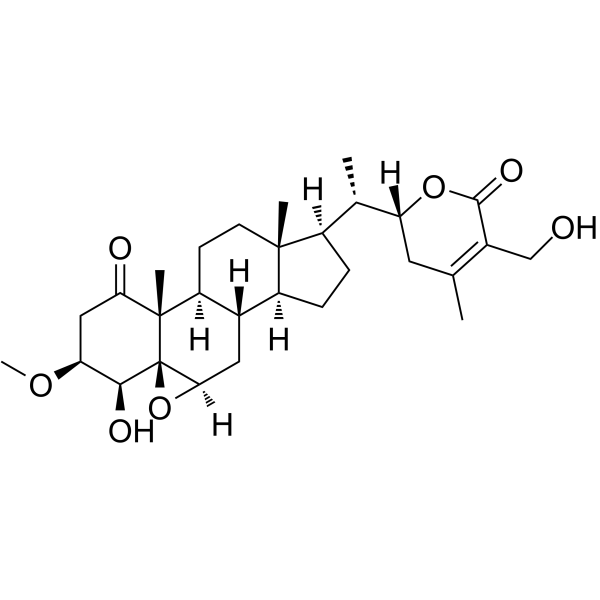 产品简述3beta-Methoxy-2,3-dihydrowithaferin A has cytoprotective activity, it protects normal cells against stress.