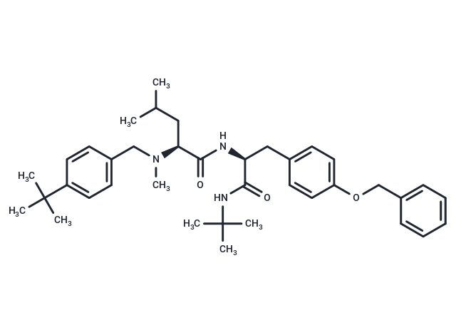SMILESCC(C)C[C@H](N(C)Cc1ccc(cc1)C(C)(C)C)C(=O)N[C@@H](Cc1ccc(OCc2ccccc2)cc1)C(=O)NC(C)(C)C