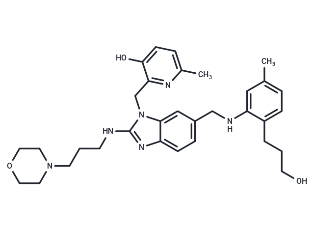 SMILESCc1ccc(CCCO)c(NCc2ccc3nc(NCCCN4CCOCC4)n(Cc4nc(C)ccc4O)c3c2)c1