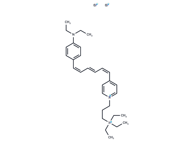 SMILES[Br-].[Br-].CCN(CC)c1ccc(\C=C/C=C/C=C\c2cc[n+](CCC[N+](CC)(CC)CC)cc2)cc1