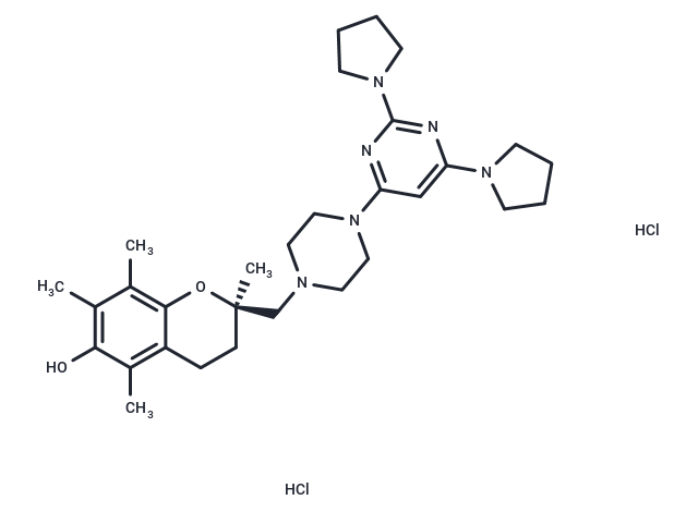 SMILESCC1=C2C(O[C@](C)(CC2)CN3CCN(C4=NC(N5CCCC5)=NC(N6CCCC6)=C4)CC3)=C(C(C)=C1O)C.Cl.Cl