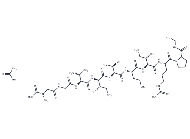 SMILESC(C)(O)=O.C([C@@H](NC([C@@H](NC([C@@H](NC([C@@H](NC([C@H](NC([C@@H](NC(CNC(CN(C(C)=O)C)=O)=O)[C@H](C)C)=O)[C@H](CC)C)=O)[C@@H](C)O)=O)CCC)=O)[C@H](CC)C)=O)CCCNC(=N)N)(=O)N1[C@H](C(NCC)=O)CCC1
