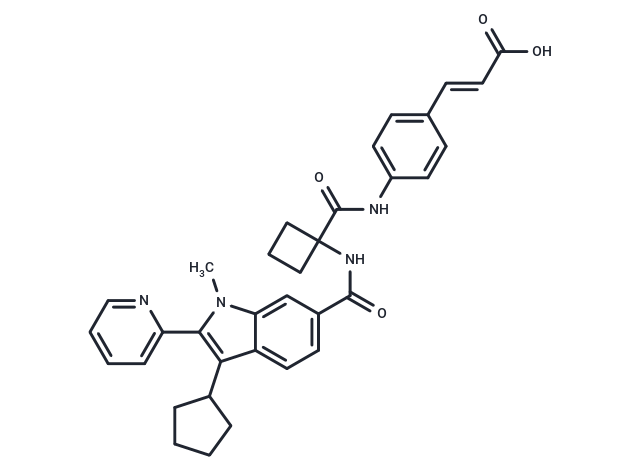 SMILESCN1C(=C(C=2C1=CC(C(NC3(C(NC4=CC=C(/C=C/C(O)=O)C=C4)=O)CCC3)=O)=CC2)C5CCCC5)C6=CC=CC=N6