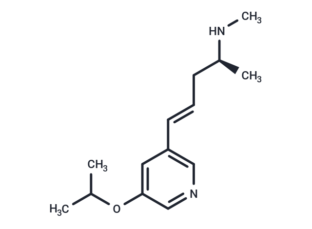 Ispronicline (TC-1734) 是一种有效的,具有口服活性的大脑选择性的 α4β2 nAChR 部分激动剂,具有增强记忆的特性和良好的耐受性。Ispronicline 高亲和力与 α4β2 nAChR 结合,Ki= 11 nM。