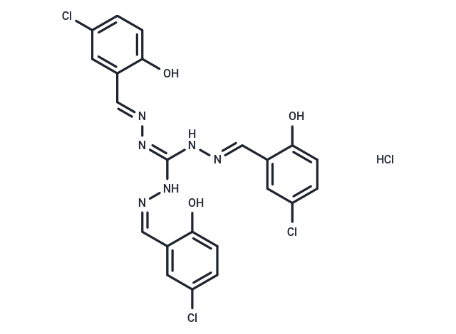 SMILESOC1=CC=C(Cl)C=C1/C=N\N/C(N/N=C/C2=CC(Cl)=CC=C2O)=N/N=C/C3=CC(Cl)=CC=C3O.Cl