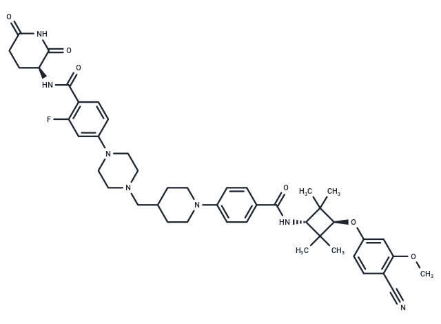 SMILESO([C@H]1C(C)(C)[C@H](NC(=O)C2=CC=C(C=C2)N3CCC(CN4CCN(CC4)C5=CC(F)=C(C(N[C@@H]6C(=O)NC(=O)CC6)=O)C=C5)CC3)C1(C)C)C7=CC(OC)=C(C#N)C=C7