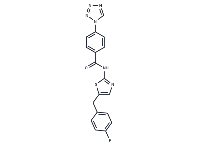 SMILESFC1=CC=C(CC2=CN=C(NC(=O)C3=CC=C(C=C3)N3C=NN=N3)S2)C=C1