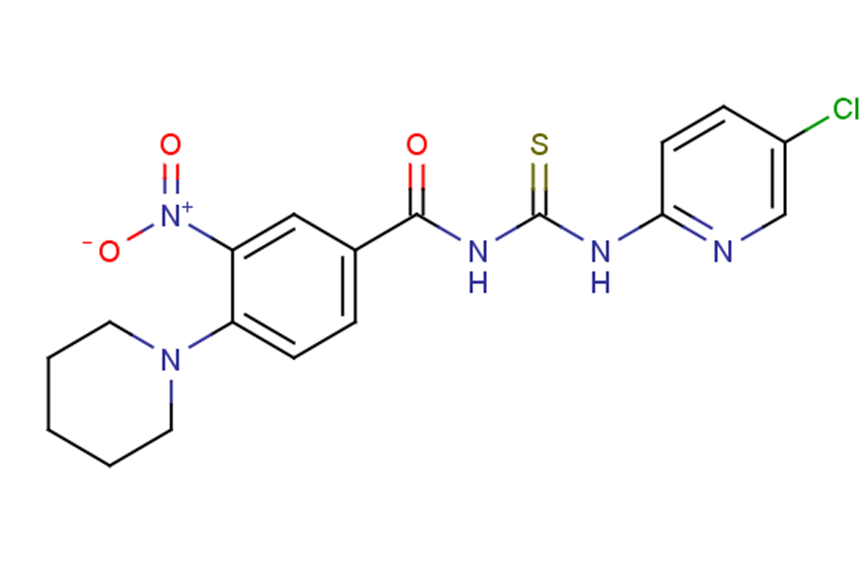 SMILES[O-][N+](=O)c1cc(ccc1N1CCCCC1)C(=O)NC(=S)Nc1ccc(Cl)cn1