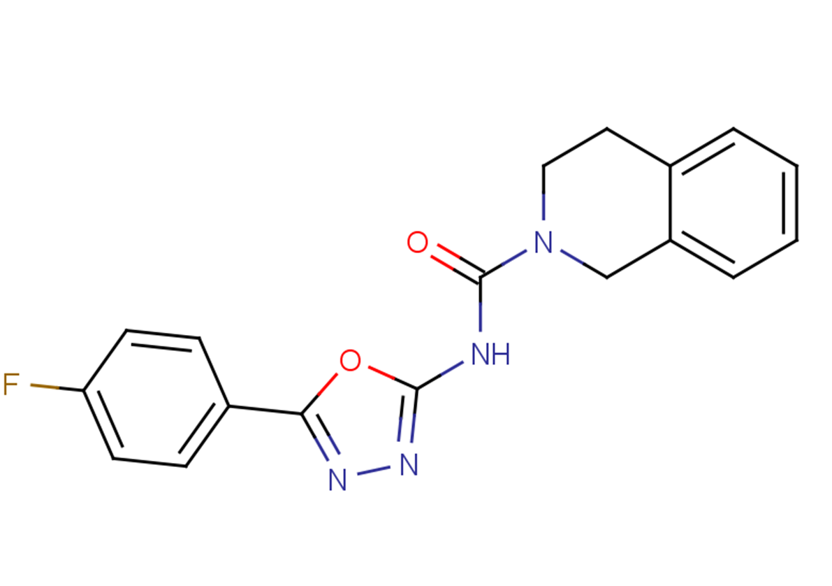 SMILESO=C(NC1=NN=C(C2=CC=C(F)C=C2)O1)N3CCC4=CC=CC=C4C3
