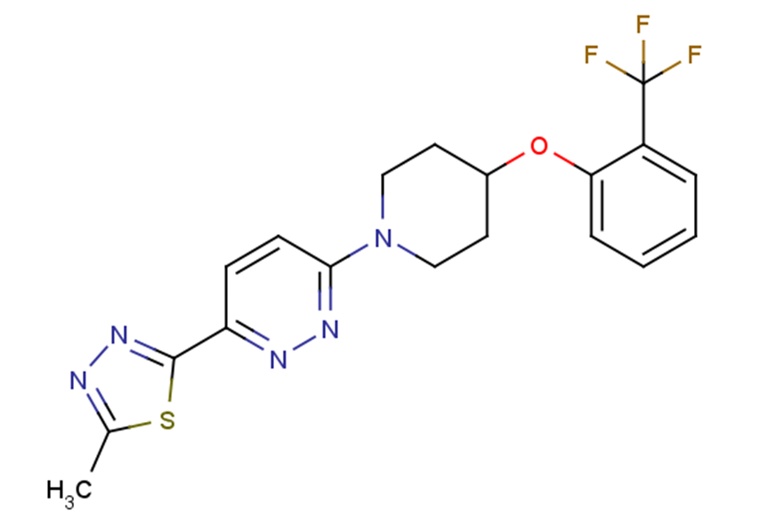 SMILESCc1nnc(s1)-c1ccc(nn1)N1CCC(CC1)Oc1ccccc1C(F)(F)F
