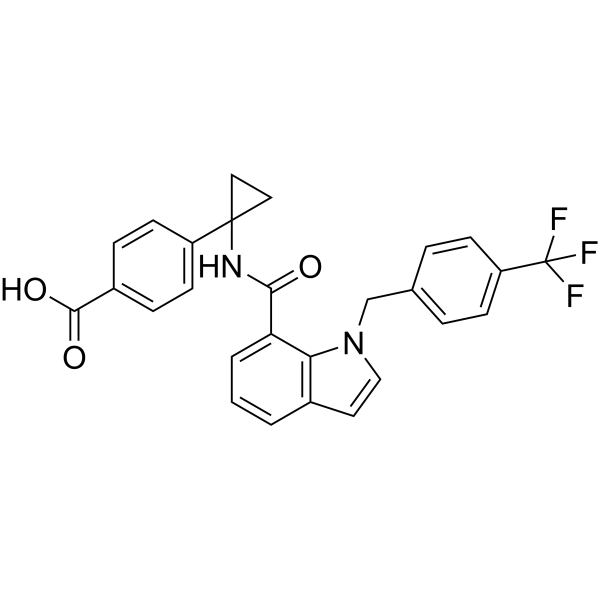 SMILESOC(c1ccc(C2(CC2)NC(c2c3n(Cc4ccc(C(F)(F)F)cc4)ccc3ccc2)=O)cc1)=O