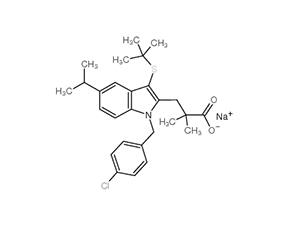 SMILESCC(C)c1cc2c(cc1)n(c(c2SC(C)(C)C)CC(C)(C)C(=O)O)Cc1ccc(cc1)Cl