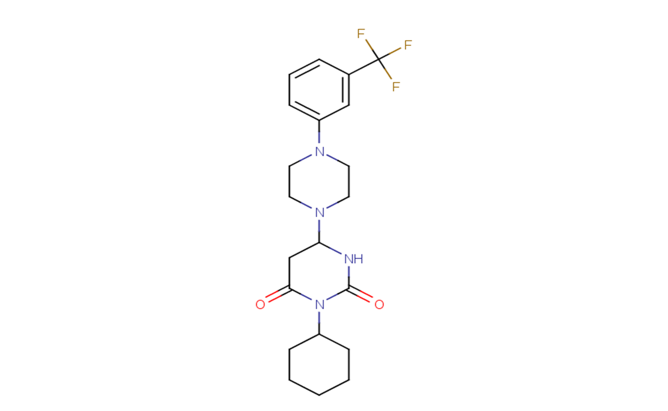 SMILESC1CCC(CC1)N2C(=O)CC(NC2=O)N3CCN(CC3)C4=CC=CC(=C4)C(F)(F)F