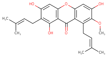 化学全称3,6,8-Trihydroxy-2-methoxy-1,7-bis(3-methylbut-2-enyl)xanthen-9-one
