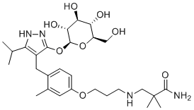 SMILESO=C(N)C(C)(C)CNCCCOC1=CC=C(CC2=C(C(C)C)NN=C2O[C@H]3[C@@H]([C@H]([C@@H]([C@@H](CO)O3)O)O)O)C(C)=C1