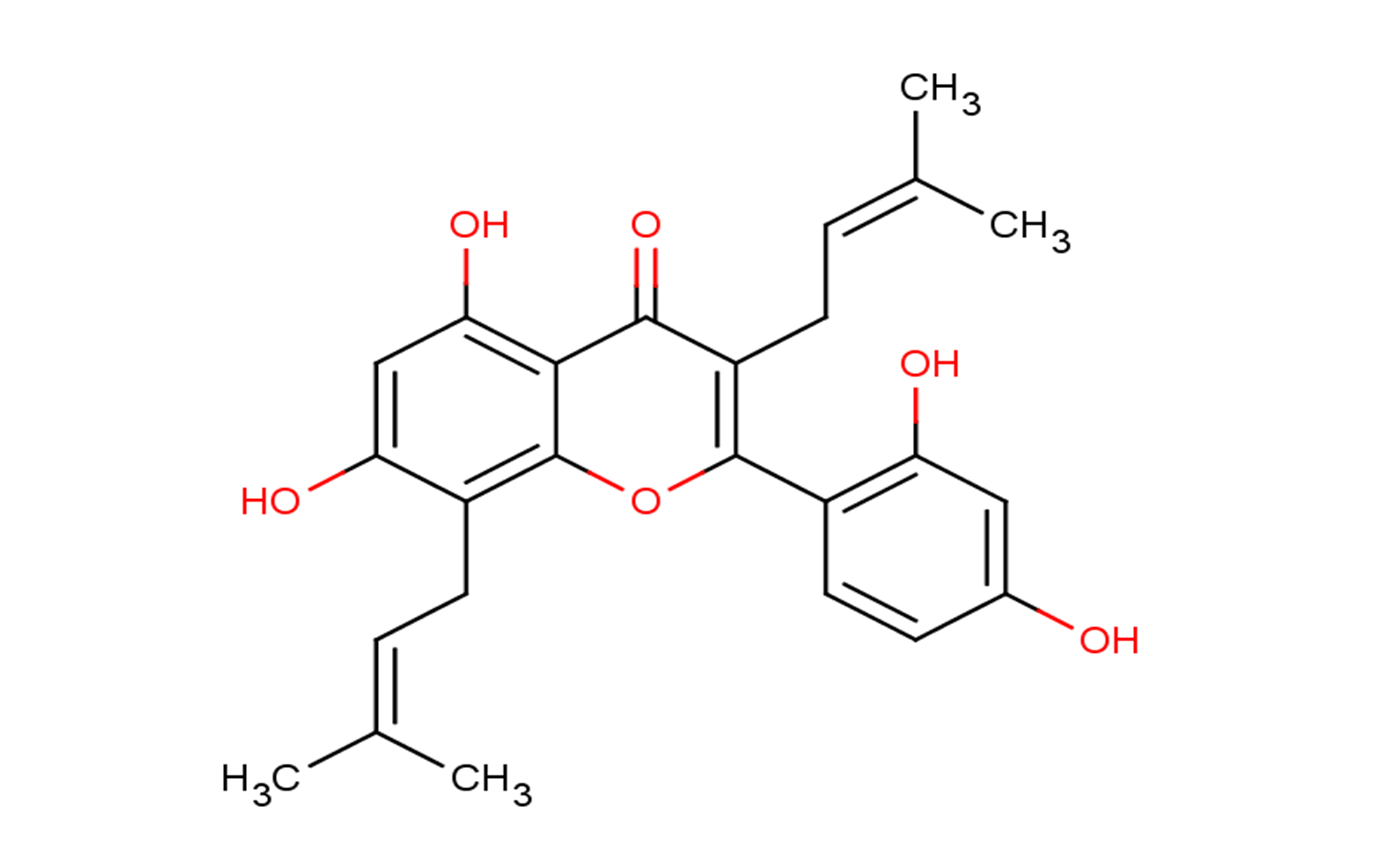 体外实验Mulberrin is a flavone with two isopentenyl groups at positions 3 and 8. Mulberrin is a strong inhibitor of OATP2B1 with more than 80% inhibition.Mulberrin also inhibits organic anion-transporting polypeptide (OATP)-mediated uptake of Atorvastatin, Fluvastatin, and Rosuvastatin.