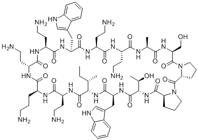 化学全称cyclo[Ala-Ser-D-Pro-Pro-Thr-Trp-Ile-Dab-Orn-D-Dab-Dab-Trp-Dab-Dab]