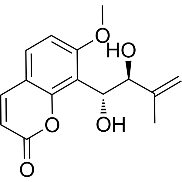 产品简述Murrangatin may be a valuable anti-tumor-promoting agent, it can significantly inhibit Epstein-Barr virus early antigen (EBV-EA) activation, and preserve the high viability of Raji cells, it also exhibits cytotoxicity against cholangiocarcinoma cell line, KKU-100.