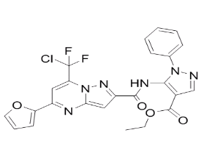 化学全称5-[[[7-(Chlorodifluoromethyl)-5-(2-furanyl)pyrazolo[1,5-a]pyrimidin-2-yl]carbonyl]amino]-1-phenyl-1H-pyrazole-4-carboxylic acid ethyl ester
