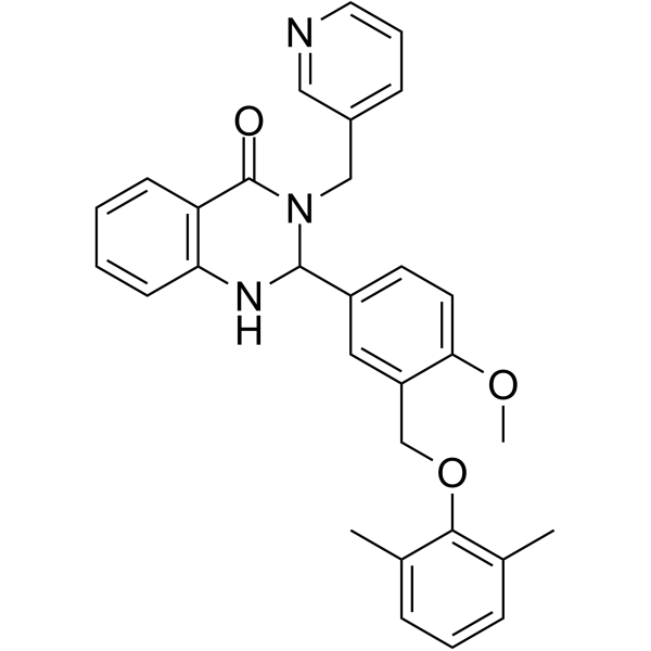 SMILESCOc1ccc(cc1COc1c(C)cccc1C)C1Nc2ccccc2C(=O)N1Cc1cccnc1