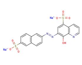 SMILESC1=CC2=C(C(=O)/C(=N/NC3=CC4=C(C=C3)C=C(C=C4)S(=O)(=O)[O-])/C=C2S(=O)(=O)[O-])N=C1.[Na+].[Na+]