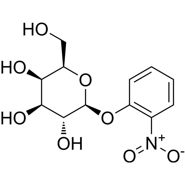 产品描述ONPG is a colorimetric and spectrophotometric substrate used to detect β-galactosidase activity.(In Vitro):To investigate the kinetic parameters of recombinant enzyme, the Michaelis-Menten constants (Km), turnover numbers (kcat), and catalytic efficiencies (kcat/Km) of Gal308 for ONPG and lactose are determined. The kcat and Km values are 464.7±7.8/s and 2.7±0.3 mM for ONPG, and 264.2±2.1/s and 7.1±0.8 mM for lactose, respectively. The kcat/Km value of the enzyme for ONPG (172.1 /s/mM) is 4.6-fold higher than that for lactose (37.2 /s/mM), which clearly demonstrated that the catalytic efficiency of Gal308 for ONPG is much higher than that for lactose. Gal308 displays high hydrolysis ability for ONPG (100%) and moderate activity for its natural substrate lactose (25.7%). However, the hydrolysis ability of the enzyme towards all other chromogenic nitrophenyl analogues is very weak, indicating that Gal308 is a β-galactosidase with narrow substrate specificity.