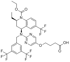 化学全称4-[2-[[3,5-bis(trifluoromethyl)phenyl]methyl-[(2R,4S)-1-ethoxycarbonyl-2-ethyl-6-(trifluoromethyl)-3,4-dihydro-2H-quinolin-4-yl]amino]pyrimidin-5-yl]oxybutanoic acid