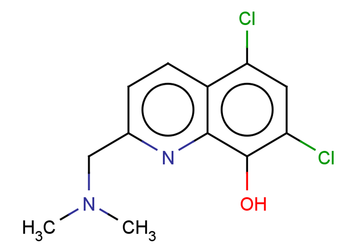 体外实验PB 1033 displays antibacterial activity against S. uberis, with a MIC value of 14.5?μM.PBT2 (1, 3 and 7.5 μM, 6 h) protects neurons against glutamate-induced excitotoxicity.PBT2 (10 μM, 1 or 6 h) reduces NMDAR-mediated Ca2+ flux in mouse cortical neurons.PBT2 (0-10 μM, 1 h) increases GSK3α/β phosphorylation in SH-SY5Y cells.PBT2 (20 μM, 1 h) prevents the formation of Zn-induced protease resistant Aβ aggregates. Western Blot Analysis Cell Line:SH-SY5Y cells Concentration:0-10 μM Incubation Time:1 h Result:Increased in cellular levels of GSK3α/β phosphorylated at the inhibitory serine 21/9 residue (ser21/9 on GSK3α/β).