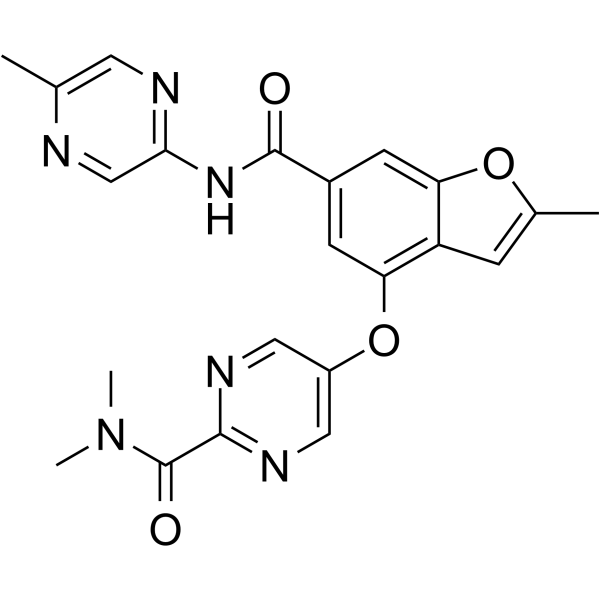 SMILESCN(C)C(=O)c1ncc(Oc2cc(cc3oc(C)cc23)C(=O)Nc2cnc(C)cn2)cn1